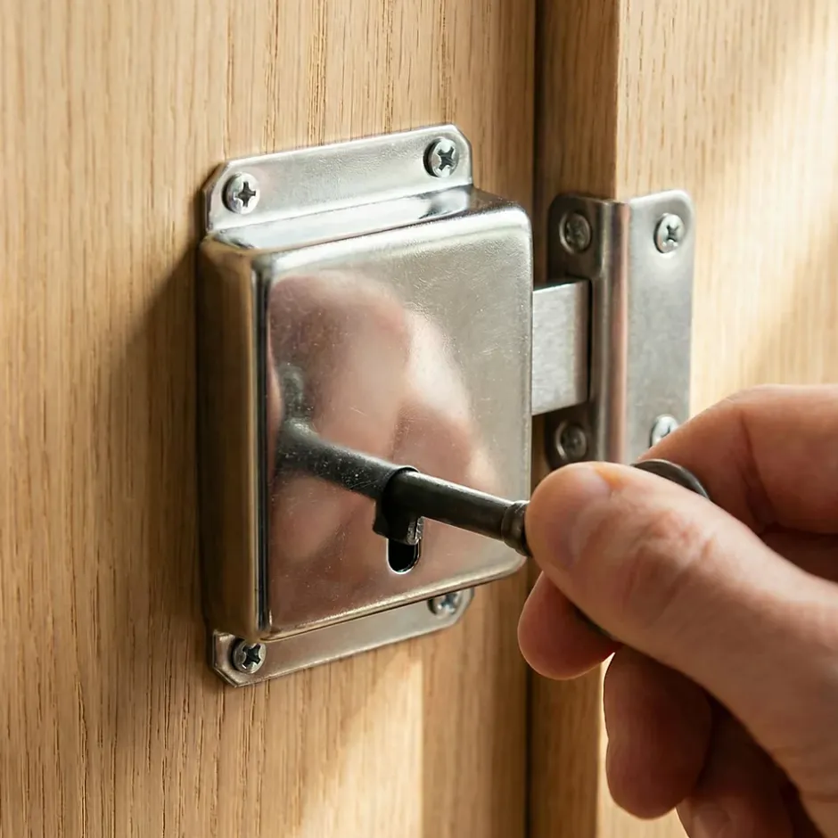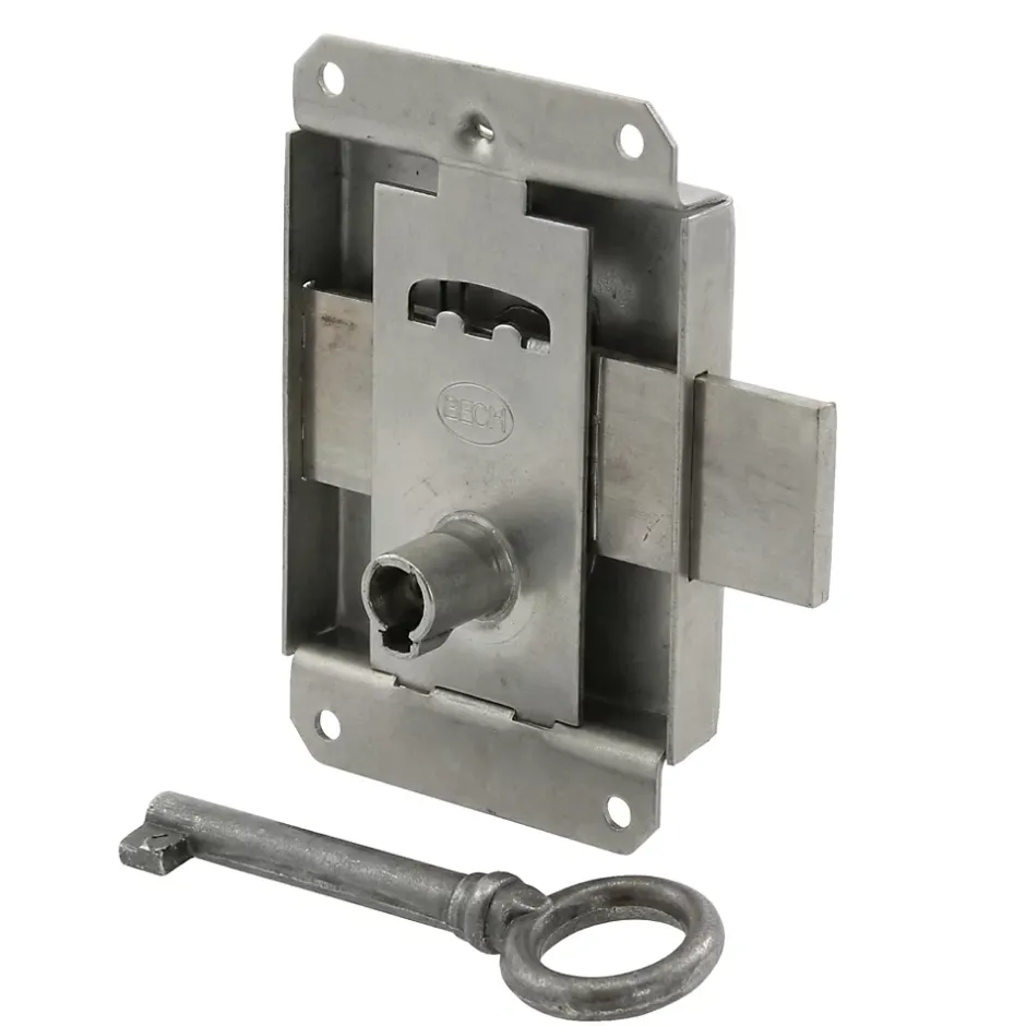 Serrure à patte axe 25 l. 45 mm x H. 50 mm x ep. 10 mm acier poli