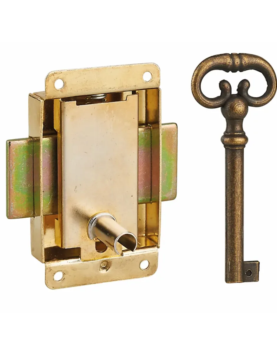Cette serrure à pattes Thirard en acier est le système de fermeture le plus simple pour verrouiller efficacement vos meubles. Une clé laitonnée vieillie est fournie avec cette serrure. Compatible avec toutes les portes de meuble, cette serrure s’installe facilement à droite comme à gauche et offre un verrouillage rapide et efficace de votre porte pour garantir la sécurité de vos biens.