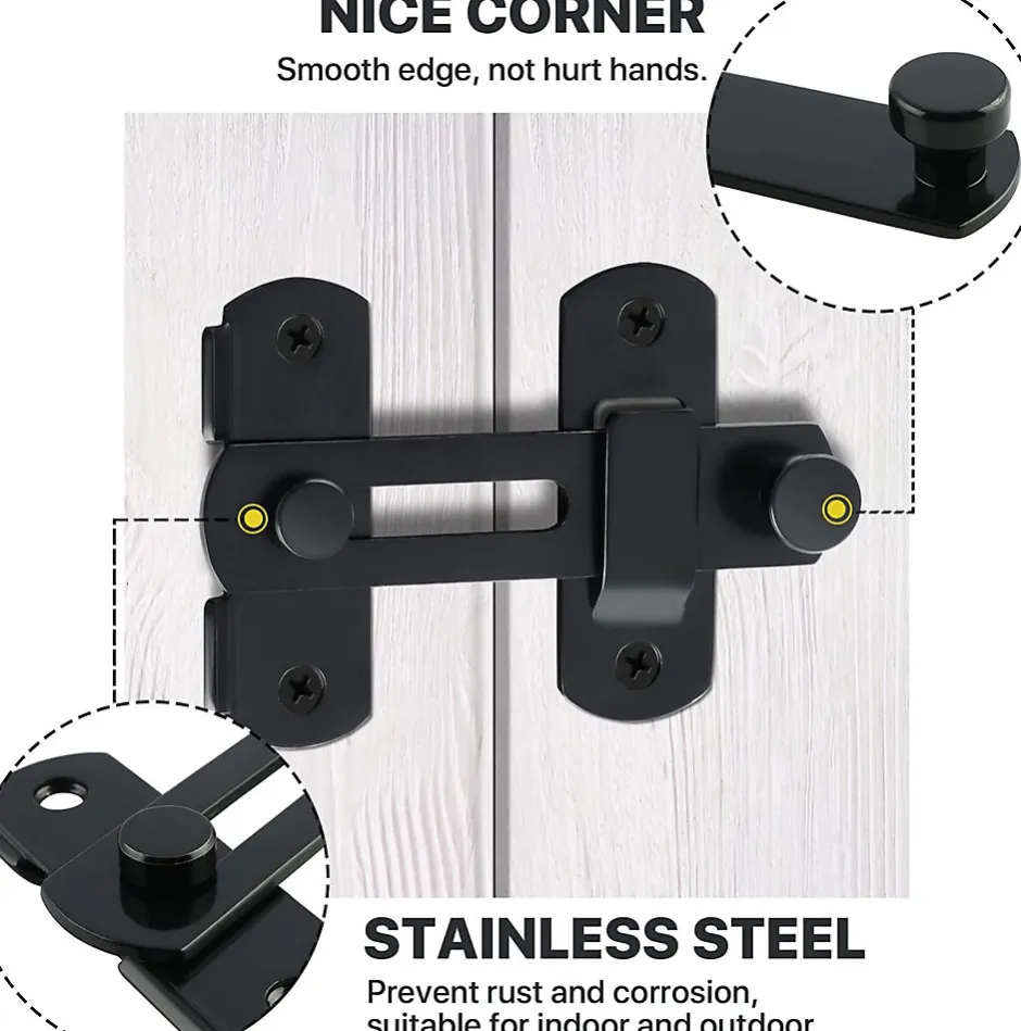 Surface impressionnante : Vous aurez une sensation tactile confortable avec la finition noire mate.Construction plus solide : La constrution d’acier inoxydable de haute qualité peut assurer la résistance et la longévité par temps humide. Usages multiples : Applicable à la sécurité des portes, des portails d’animal de compagnie, des fenêtres, des placards, des couvercles et de jardin, etc.Dimension du produit : 100 mm x 70 mm x 10 mm (L * W * H)Contenu du paquet : Verrou*1 et vis*4