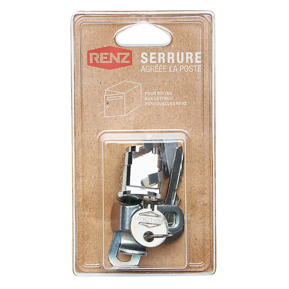 Serrure adaptable sur toutes les boites aux lettres et boites à colis individuelles Renz normalisées et modèles compacts.Serrure normalisée agréée La Poste, permet l’ouverture exceptionnelle de la boite pour livraison de colis.