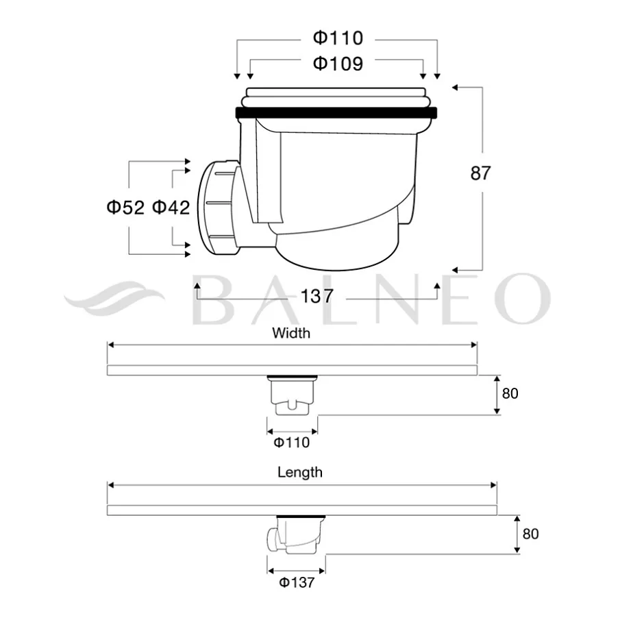 Avantages :Siphon adapté aux receveurs de douche Stone-Tray BalneoDisponible en deux hauteurs (68mm et 87mm)Peut être nettoyé (par le haut)Drainage rapideFabriqué en ABS durable de couleur blanche
