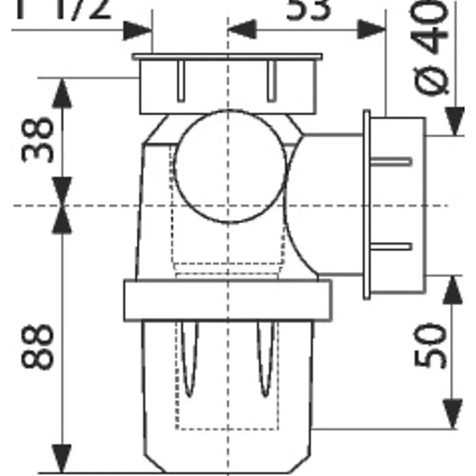 Pour installation dans un encombrement réduit Siphon non réglable avec hauteur fixe de 30 mm Sortie avec écrou 1 »1/2 et joint américain Ø 40