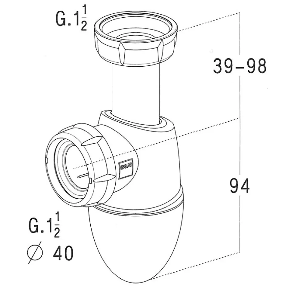 - Raccordement standard D 40 mm compatible avec la plupart des installations.