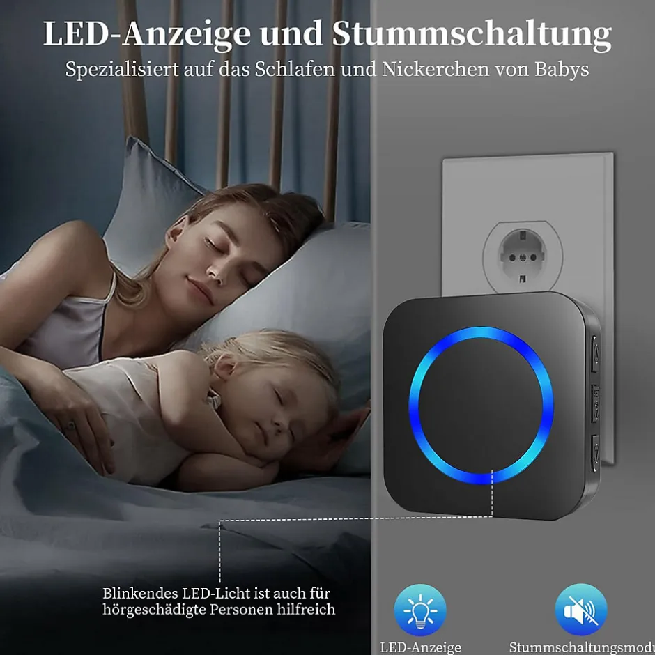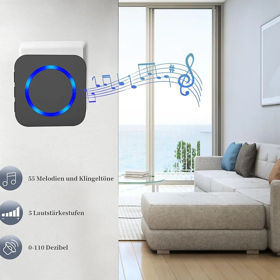 【Signal Fort, Partout】Notre sonnette offre une portée puissante de 300 mètres dans les zones ouvertes, vous assurant d’être toujours en contact. Que vous soyez dans le jardin, à l’étage, ou même au sous-sol, ne manquez jamais un visiteur à nouveau.【Performance Tout Temps】Notre sonnette radio est résistante à la poussière et à l’eau, supportant des températures de -30°C à 70°C.【Son Personnalisé, Modes Flexibles】Profitez d’un contrôle précis avec 5 niveaux de volume jusqu’à 110 dB, parfait pour les personnes malentendantes ou âgées. Sans batterie