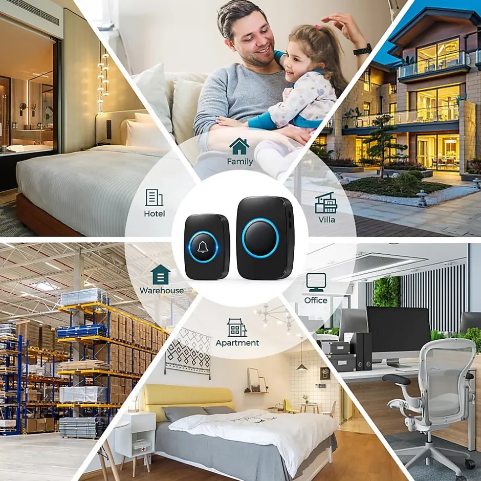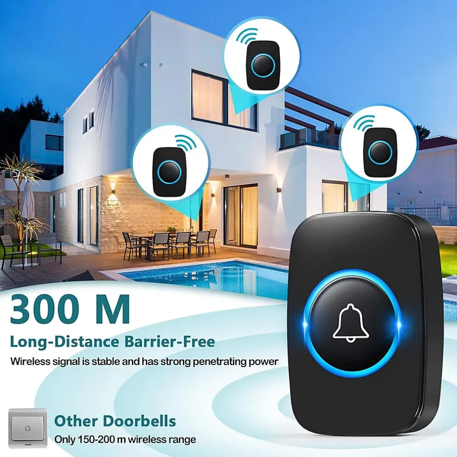 Volume Réglable sur Cinq Niveaux et Large Sélection de Musiques – Ce carillon de porte sonnette sans fil est équipé de cinq niveaux de volume réglables, assurant un son clair dans différents environnements. De plus, il propose 60 options musicales diversifiées pour répondre à vos besoins personnalisés, apportant une touche de fraîcheur à chaque sonnerie de visiteur.Large Portée Sans Fil – Sonnette sans fil extérieur alimenté par une technologie de transmission sans fil puissante, la portée opérationnelle du carillon atteint jusqu’à 300 mètres. Cela garantit une réception de signal stable même dans de grandes maisons ou des arrière-cours spacieuses, afin de ne manquer aucun visiteur.Sans batterie