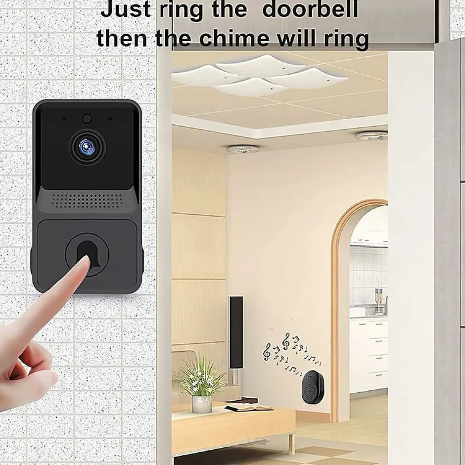 Description du produitApplication Smart Living avec une sonnette qui prend en charge la connectivité des smartphones, active les notifications et la conversation bidirectionnelle pour une surveillance facile de la maison. sonnette intelligente pour google home, sonnette sans fil avec caméra pour alexa, sonnette sans fil avec caméraSonnette de connexion sans fil avec batterie : batterie rechargeable longue durée de 800 mAh : la sonnette vidéo à connexion sans fil intelligente est équipée de 2 batteries rechargeables de 800 mAh. Batteries que nous fournissons pour les sonnettes vidéo Une charge complète prend environ 5 heures. La sonnette extérieure peut durer jusqu'à 60 jours avec une seule charge. Mode veille jusqu'à 180 jours Sonnette vidéo de sécurité intelligente avec caméra : la sonnette vidéo à vision nocturne infrarouge ultra-claire avec fonctions de sécurité passe automatiquement du mode jour au mode nuit en fonction des conditions d'éclairage. Sonnette vidéo compatible Ring Sonnette vidéo avec moniteur sans fil : connectez-vous facilement à une sonnette Wi-Fi via votre application de sonnette sans fil et configurez-la rapidement et facilement à l'aide du Wi-Fi 2,4 GHz (la sonnette vidéo sans fil ne prend pas en charge Wi-Fi 5 GHz). Les sonnettes vidéo sans fil sont sans fil, ce qui permet d'installer des sonnettes sans fil n'importe où. Communication audio bidirectionnelle claire et partage multi-utilisateur : notre sonnette sans fil avec caméra dispose d'un microphone et d'un haut-parleur réactifs et avancés avec filtre de bruit intégré pour une communication bidirectionnelle claire Et communiquez avec vos visiteurs en temps réel à tout moment depuis votre smartphone, et permettez également à vos visiteurs de conduire même des personnes non invitées. Cette sonnette sans fil prend également en charge le partage à domicile et peut connecter jusqu'à 9 utilisateurs.