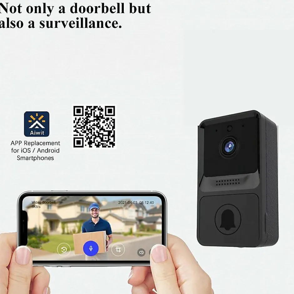Notifications sur smartphone et audio bidirectionnelLorsque quel un appuie sur la sonnette, il capture des images et envoie immédiatement une notification à votre smartphone ; avec le microphone intégré, vous pouvez voir et parler avec vos visiteurs importe quand et importe où. Vision nocturne Cloud Storage,Avec des perles de lampe LED IR de haute qualité intégrées, image est claire même la nuit ; stockage cloud gratuit pris en charge (couverture de cycle automatique de 3 jours), pas besoin de carte TF.Équipé une cloche Signal fort et stable, facile à assortir, le la portée de transmission entre la sonnette et la sonnette est jus à 10 mètres; avec alimentation USB, facile à installer, ne vous inquiétez pas de la batterie faible. Alimentation La sonnette est alimentée par une grande batterie intégrée de 800 mAh, elle a une longue durée de fonctionnement après avoir été complètement chargée par une banque alimentation, un adaptateur secteur, un ordinateur, etc. vous avez pas besoin de recharger fréquemment.Couleur : NoirMatériau : ABSCapacité de la batterie : 800 mAhTaille de la cloche : 8 * 4,5 * 2,4 cm/ 3,1 * 1,7 * 0,9 poucesPoids du bip : 60 g/ 2,1 ozTaille du bip : 6,5 * 4,5 * 1,4 cm/ 2 1,5 * 1,7 * 0,5 poucesPoids du bip : 30 g/ 1,05 ozRemarque:Le smartphone montré dans les images est pas inclus.
