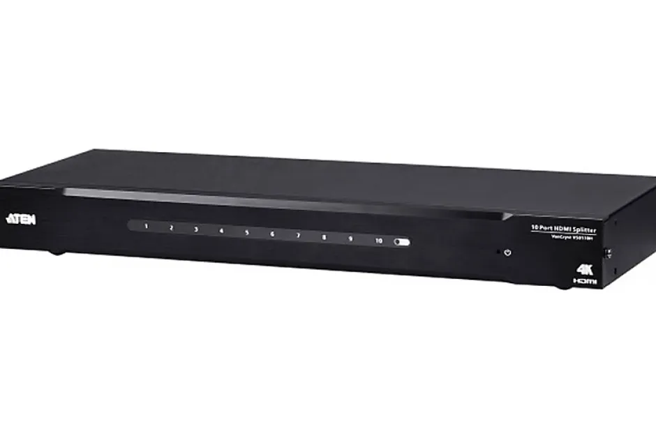 Répartiteur HDMI 10 sorties 3D 4K ATEN (VS0110HA)Le distributeu HDMI VS0110HA est la solution idéale pour envoyer une source vidéo HD, 3D ou 4K 60Hz à dix téléviseurs , moniteurs ou vidéo projecteurs en même temps. Il prend en charge tous les équipements HDMI, tels que les lecteurs de DVD, les décodeurs satellites. Le répartiteur HDMI VS0110HA est conforme à la norme HDCP , ce qui lui permet d’être utilisé avec tous les périphériques d »affichage HDMI dans les applications multimédias comme le home cinéma.Mais aussi dans les entreprises et les environnements éducatifs et commerciaux Contenu de la boite : 1 x VS0110HA splitter HDMI 10 ports 1 x adaptateur secteur 1 x câble HDMI 1 x manuel d’utilisation