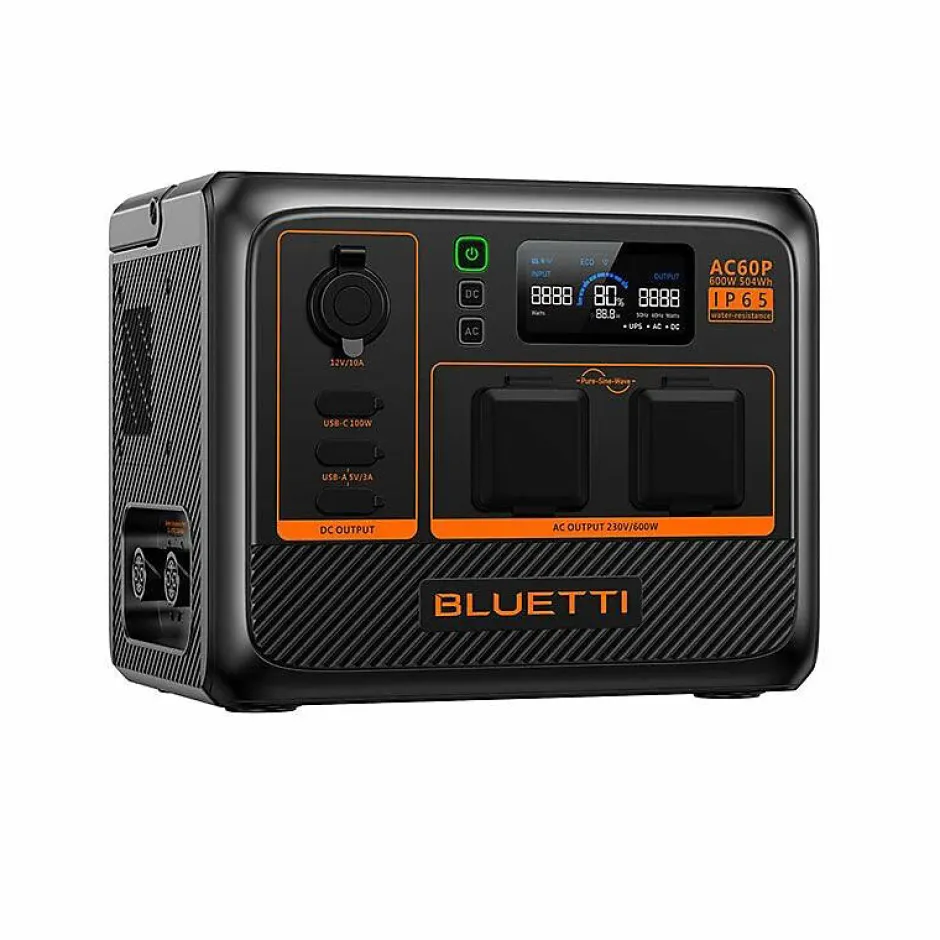 La Bluetti Premium 60S (AC60P) est une station d’énergie portable robuste et compacte, offrant une puissance de 600W et une capacité de 504Wh. Équipée d’une batterie LiFePO₄ durable avec plus de 3000 cycles de vie, elle assure une alimentation fiable pour vos appareils essentiels. Grâce à ses 7 ports de sortie (AC, USB-A, USB-C, allume-cigare, recharge sans fil), elle permet de connecter plusieurs dispositifs simultanément. Sa recharge rapide atteint 100% en seulement 1 heure via une entrée secteur ou solaire. Certifiée IP65, elle est résistante à la poussière et à l’eau, idéale pour le camping, les voyages en van ou comme source d’énergie d’appoint à domicile.