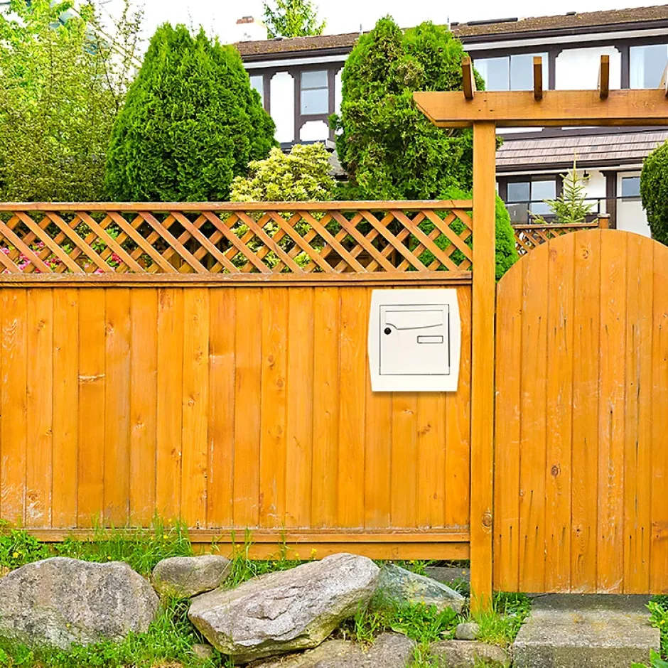 Support grillage rigide & palissade, pour une intégration dans des panneaux de grillage rigide ou de palissade (bois, composite, métal…). Permet de poser la boite aux lettres en bordure de propriété au travers d’une clôture rigide, idéal pour les modèles 2 portes. Visserie fournie. Acier revêtu bi-métal, différentes finitions en poudre polyester à coordonner avec votre boite aux lettres et votre clôture. Fixation possible sur des surfaces dont l’épaisseur est comprise entre 5 mm et 30 mm. Dimensions hors tout : L 378 x H 417 x P 359 mm. Gabarit de pose et visserie fournis pour fixer le support grillage rigide & palissade sur la clôture et pour fixer la boite sur l’accessoire. Garantie anti-corrosion 15 ans.Support pour poser sa boite aux lettres sur grillage rigide et palissade. Permet de poser la boite en bordure de propriété au travers d’une clôture rigide. Idéal pour les modèles 2 portes. Garantie anti-corrosion 15 ans.Photos non contractuelles, se référer au RAL pour le coloris.