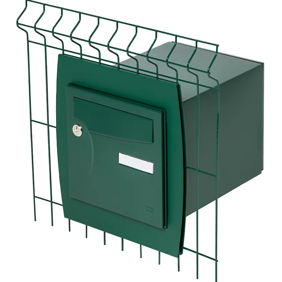 Support grillage rigide & palissade, pour une intégration dans des panneaux de grillage rigide ou de palissade (bois, composite, métal…). Permet de poser la boite aux lettres en bordure de propriété au travers d’une clôture rigide, idéal pour les modèles 2 portes. Visserie fournie. Acier revêtu bi-métal, différentes finitions en poudre polyester à coordonner avec votre boite aux lettres et votre clôture. Fixation possible sur des surfaces dont l’épaisseur est comprise entre 5 mm et 30 mm. Dimensions hors tout : L 378 x H 417 x P 359 mm. Gabarit de pose et visserie fournis pour fixer le support grillage rigide & palissade sur la clôture et pour fixer la boite sur l’accessoire. Garantie anti-corrosion 15 ans.Support pour poser sa boite aux lettres sur grillage rigide et palissade. Permet de poser la boite en bordure de propriété au travers d’une clôture rigide. Idéal pour les modèles 2 portes. Garantie anti-corrosion 15 ans.Photos non contractuelles, se référer au RAL pour le coloris.