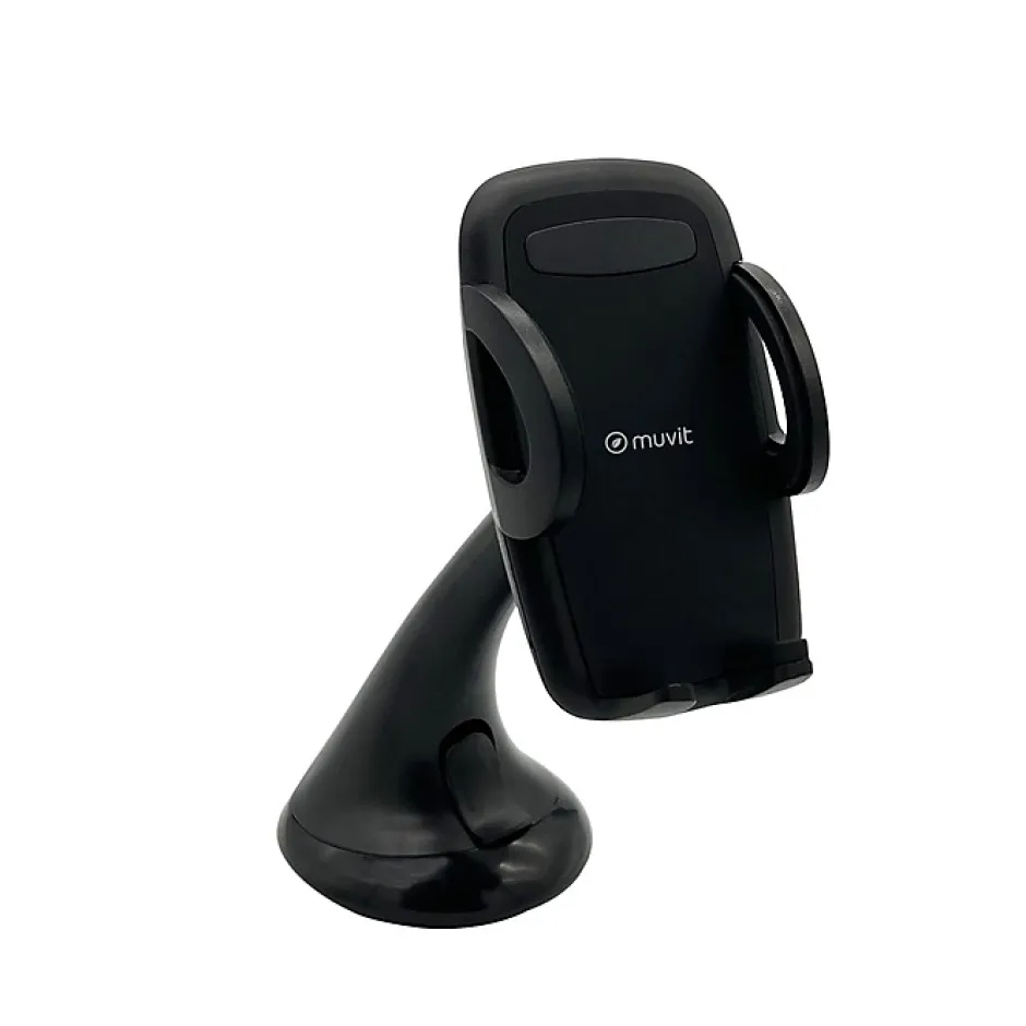Support Voiture Universel 92mmCe support voiture noir de marque Muvit est compatible avec tout Smartphone d’une largeur maximale de 92mm. Il dispose d’une pince extensible favorisant une fixation stable de votre mobile. Ce support est compatible avec tout type de grilles d’aération, de pare-brise et de tableaux de bord. Rotatif à 360°, il permet un angle de vue ajustable en fonction de votre préférence.En résumé :Compatible avec tout Smartphone d’une largeur maximale de 92mm.Conçu avec un mélange de polyuréthane, de silicone, de plastique et de métal, lui conférant résistance et durabilité.Rotatif à 360°, permettant un angle de vue ajustable en fonction de votre préférence.Dispose d’une pince extensible favorisant une fixation stable de votre mobile.