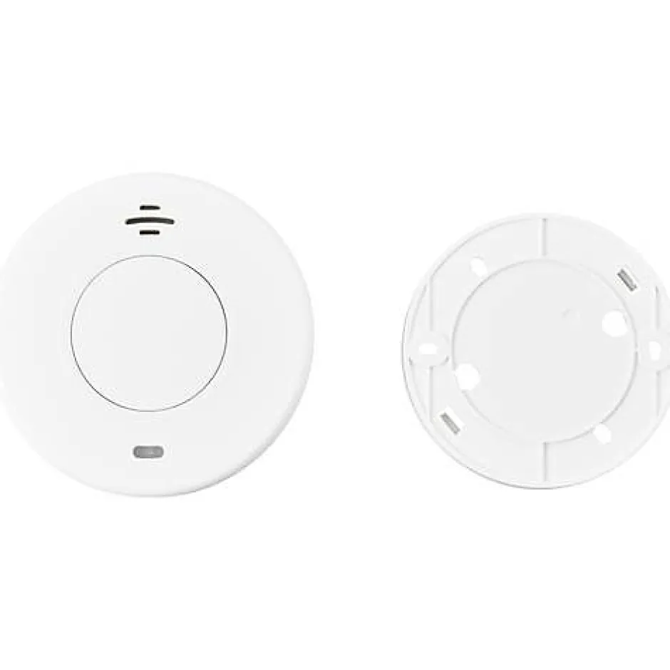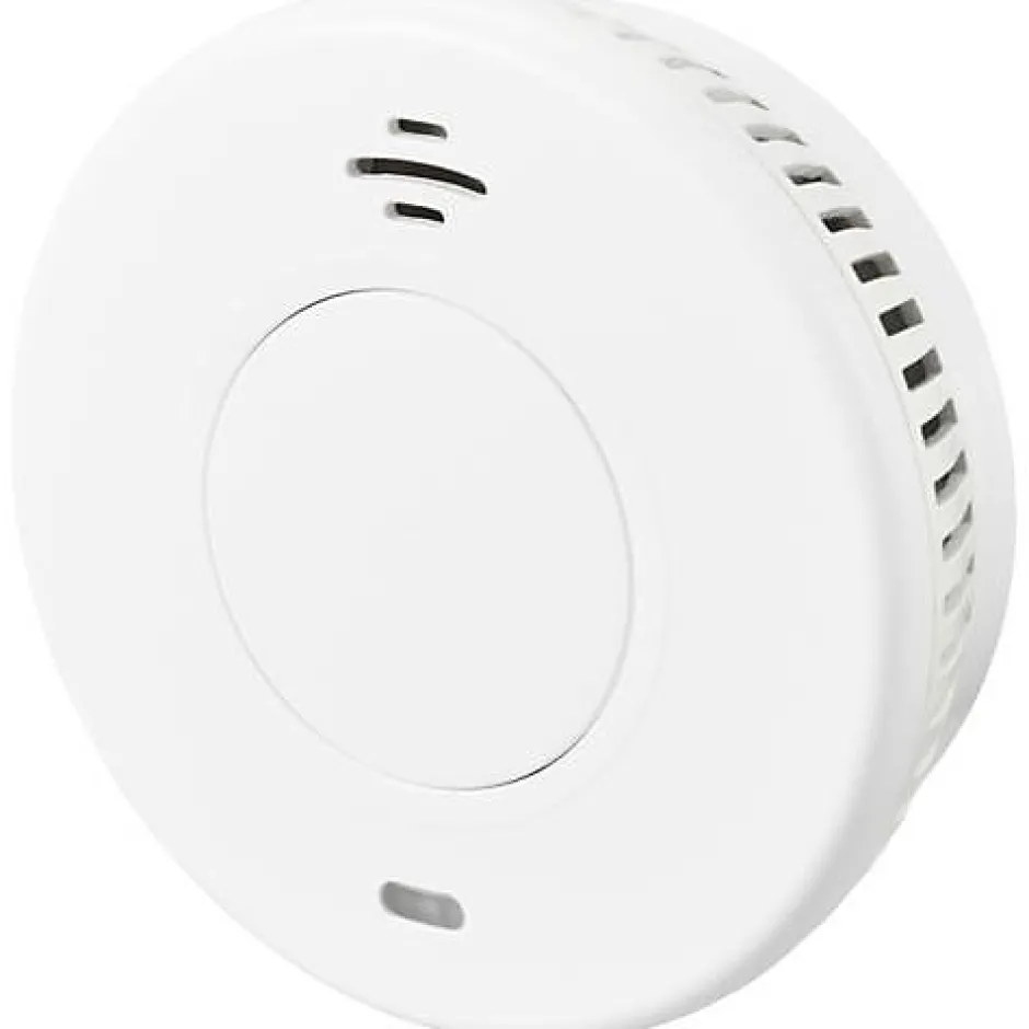 Détecteur de fumée Sygonix SY-5799628, capteur optique photoélectrique, autonomie 10 ans grâce à la pile CR123A fournie et préinstallée. Alarme sonore 85 dB et témoin lumineux clignotant en cas de détection. Grand bouton pour test et désactivation, mode test/silence, et signal d’avertissement pile faible. Montage simple avec plaque de fixation, 2 vis, 2 chevilles et bande adhésive 3M. Conforme à la norme EN14604, diamètre 105 mm, profondeur 36 mm, poids 130 g.
