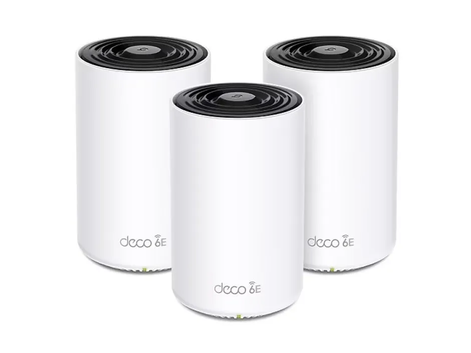 Système WiFi Mesh TP-LINK Deco X75 WiFi 6E AXE5400 3x RJ45 Gigabit – Pack de 3WiFi rapide, stable et facile d’installation qui couvre toute la maisonWiFi 6E AXE5400 Tri-Bande – Routeur qui augmente les débits jusqu’à un incroyable 5400 Mbps grâce au WiFi 6EMesh AI-Driven – Apprend intelligemment l’environnement réseau pour fournir un WiFi idéal unique à votre maisonFonctionne sur la bande 6 GHz – Une fréquence nouvellement disponible apporte plus de bande passante et des débits plus rapidesConnectez plus d’appareils – Connectez plus de 200 appareils sans réduire les performancesCouverture transparente renforcée – Obtenez une couverture transparente dans toute la maison avec un signal WiFi pour toute la maison plus clair et plus puissant généré par WiFi 6ETP-Link HomeShield – Protège votre réseau avec des fonctionnalités de pointe pour la protection du réseau et de l’IoTInstallation plus facile que jamais – L’application Deco vous guide pas à pas dans la configurationCompatibilité universelle – Rétrocompatible avec toutes les générations WiFi et fonctionne avec n’importe quel fournisseur de services Internet (ISP) et modem/ Box InternetSpécificités TechniquesTP-Link Deco XE75 ProCouleur : BlancType d’antenne: InterneNombre de ports Ethernet : 3Débit Ethernet : GigabitType de produit: Routeur mailléBande Wi-Fi: Tri-bande (2,4 GHz / 5 GHz / 6 GHz), Norme Wi-Fi: Wi-Fi 6E (802.11ax)Standards wifi: 802.11a, 802.11b, 802.11g, Wi-Fi 4 (802.11n), Wi-Fi 5 (802.11ac), Wi-Fi 6 (802.11ax), Wi-Fi 6E….Fréquence du processeur: 1,7 GHzPare-feu de sécurité: SPI FirewallFonctions contrôle parental: Heure du coucherFiltre de contenu, Profils personnalisés, Temps en famille, Pause the Internet,….Tension d’entrée de l’adaptateur secteur: 100 – 240 VoltFréquence de l’adaptateur secteur: 50 – 60 Hz,Tension sortie de l’adaptateur secteur: 12 VoltLargeur: 105 mmProfondeur: 105 mmHauteur: 169 mm