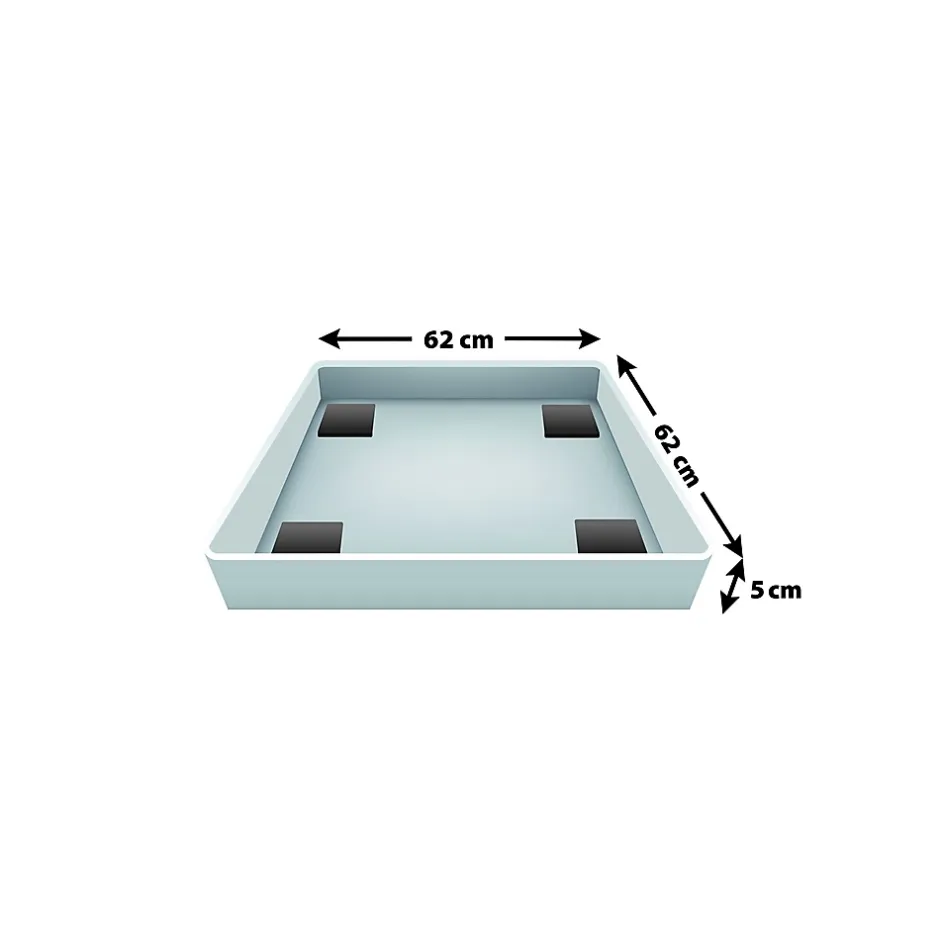 Tapis en forme de réceptacle étanche en cas de fuite ou suintement, il est équipé de 4 patins en caoutchouc qui permettent l’absorption des vibrations liées à l’utilisation de la machine à laver ou du sèche-linge.