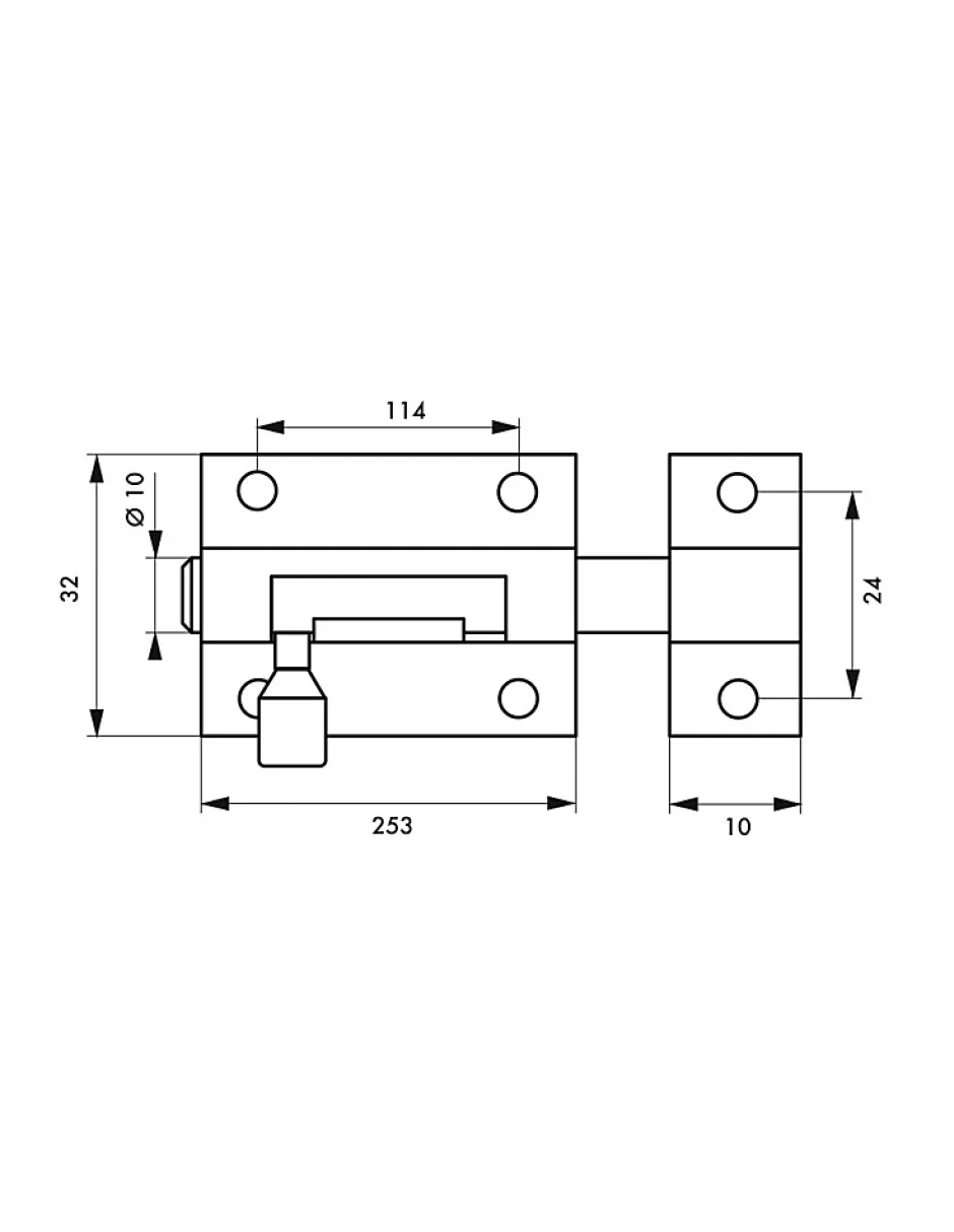 Coffre alliage moulé. Pêne rond coulissant. Bouton rond.