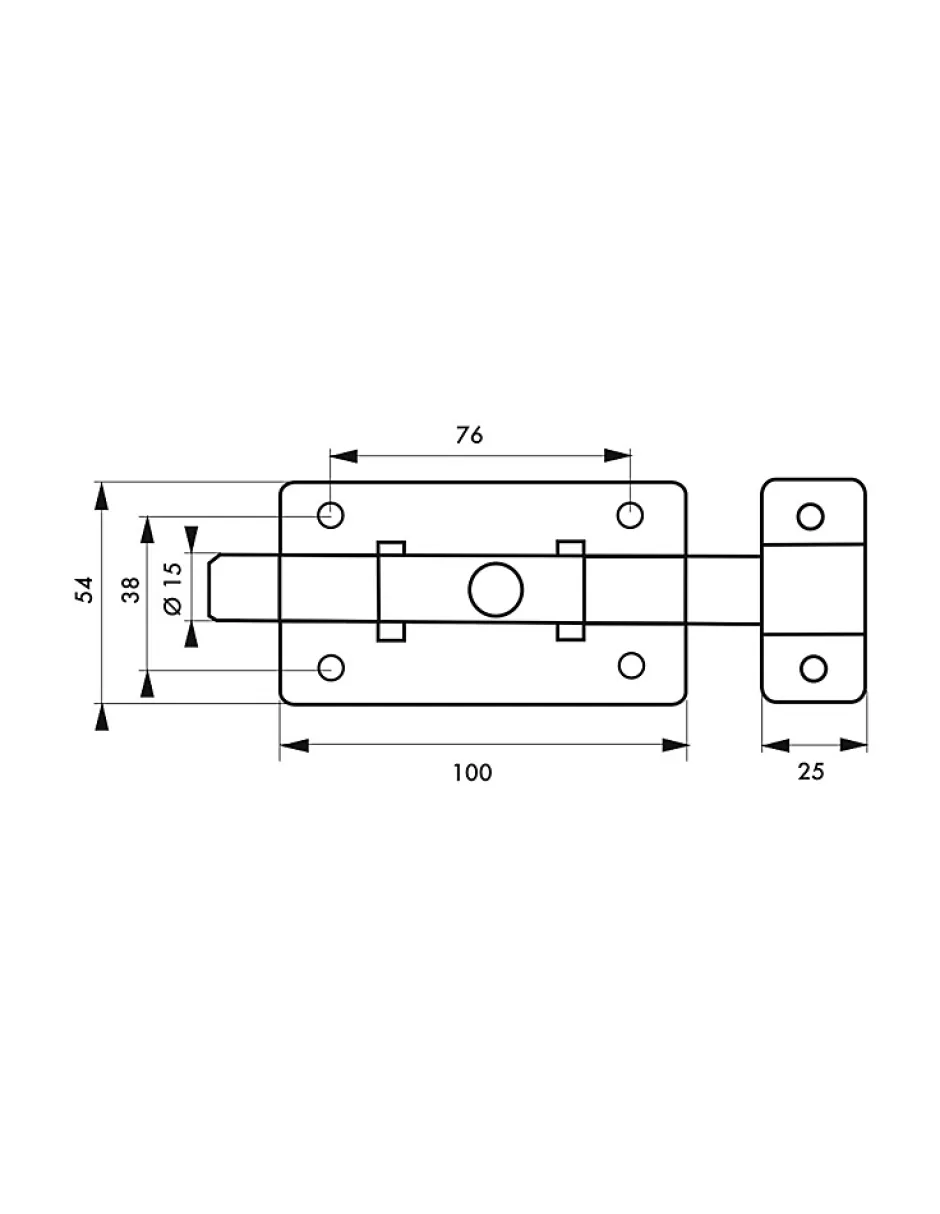 Corps acier chromé. Gâche acier chromé. Bouton rond. Pêne plat coulissant.