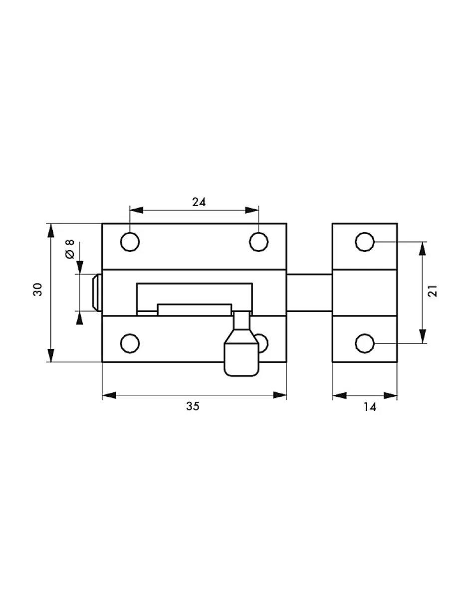 Corps laiton étiré. Gâche laiton étiré. Bouton laiton décolleté. Pêne rond coulissant.