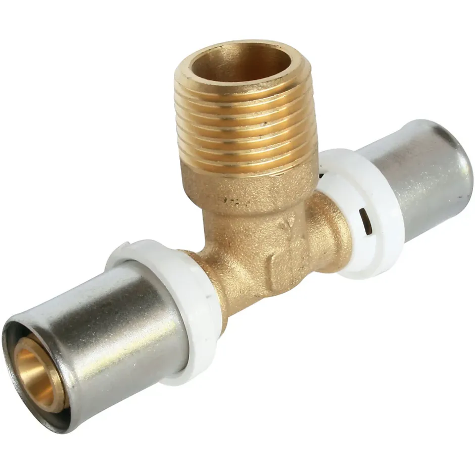 - Té à sertir pour tube Multicouche Ø20 Mâle 15/21 (1/2 ») au centre Té Multicouche à sertir Ø20 M15/21 Ø20 Permet de raccorder un tube multicouche Ø20 par sertissage multiprofil (U-H-TH) Simplicité de pose : ce raccord est multiprofil et donc adapté aux 3 types de profils de machoires = U, H et TH Sécurité lors du raccordement grâce à la douille en acier inoxydable avec fenêtre de contrôle qui permet de vérifier le bon positionnement du tube Raccord conforme à la norme NF 545 Sécurité d’étanchéité grâce aux 2 joints toriques Présence d’une bague en PTFE pour éviter la prolifération des courants vagabonds. Produit conforme à la législation en vigueur sur les matériaux en contact avec l’eau destinée à la consommation humaine