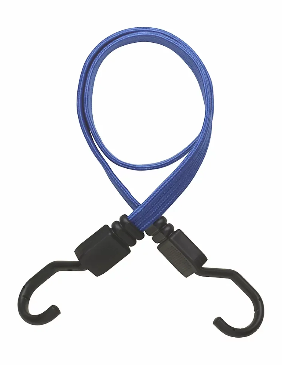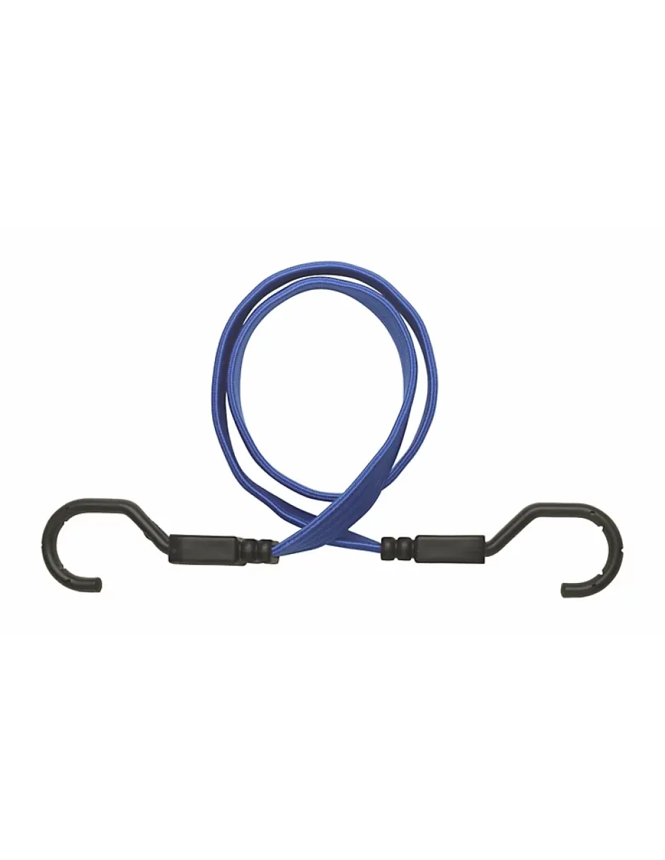 Tendeur plat, cordon en caoutchouc de latex, crochets en plastique. Bleu. Longueur 80cm. Arrimage plat pour sécuriser les charges sans les endommager.