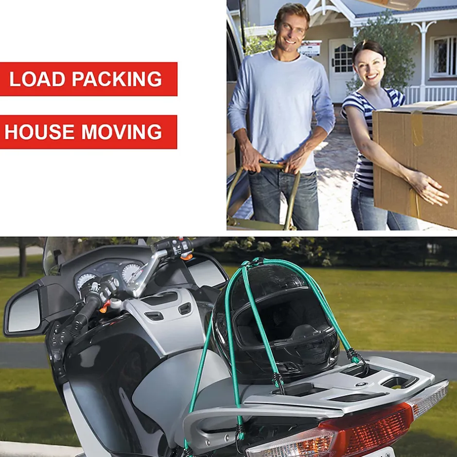 Le modèle Spider Twin Wire™ Master Lock n° 3105EURDAT comprend six tendeurs verts de 80 cm avec crochets double fil pour une résistance supérieure. Le design avec des crochets inversés sur le tendeur permet d’avoir un espace d’accrochage plus large. Le bout des crochets est arrondi pour prévenir les risques de rayures. Idéal pour être utilisé sur une moto ou un vélo, grâce à ses six cordes élastiques qui aident à maintenir la charge.
