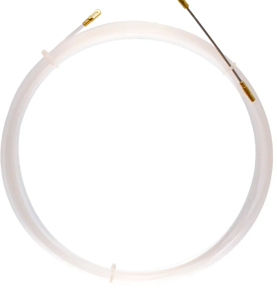 La sonde d’entrée de câble est un long câble à fibre flexible avec une extrémité équipée d’une boucle de traction et l’autre d’une tête aveugle. Elle est utilisée pour insérer des câbles électriques dans des tuyaux ondulés, goulottes etcSonde tire-câble en nylon, blanche, Ø 3 mm, 30 mètres, avec bornes fixes. La sonde en nylon de ø 3 mm convient aux installations de systèmes électriques dans le secteur civil et est idéale pour les tronçons courts et sinueux. Avantages : économie, facilité d’utilisation et grande flexibilité. Le Nylon est un matériau avec de hautes caractéristiques mécaniques, durable et indéformable. Sa flexibilité permet, avec beaucoup de facilité, l’introduction dans des tubes de 20-25 mm en optimisant les temps et les méthodes de travail. Dispose d’une tige de guidage courbée flexible et d’une boucle interchangeable avec filet. Possède une excellente résistance à la traction et une excellente facilité de courbure ; aucune conductivité électrique, assurant ainsi une utilisation sûre.