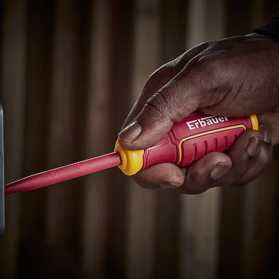 Ce tournevis plat VDE à poignée confort est conçu pour les électriciens professionnels. Testé à 10 000V, valeur nominale 1000V CA.