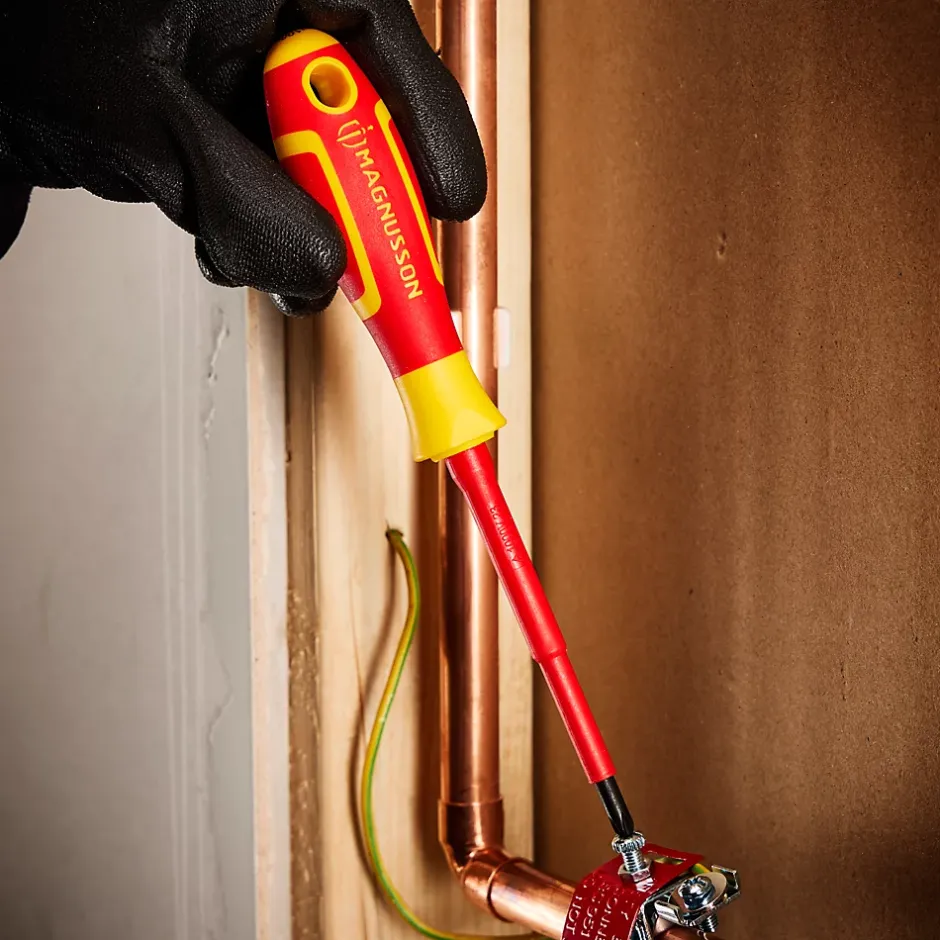 Ce tournevis phillips vde PH1 en acier de Magnusson est indispensable pour faciliter l’insertion de vis dans le bois. La poignée à prise souple a été conçue pour le confort, le contrôle et réduire les tensions des mains après une utilisation prolongée, et offre un couple plus élevé pour un vissage efficace des vis dans le bois.