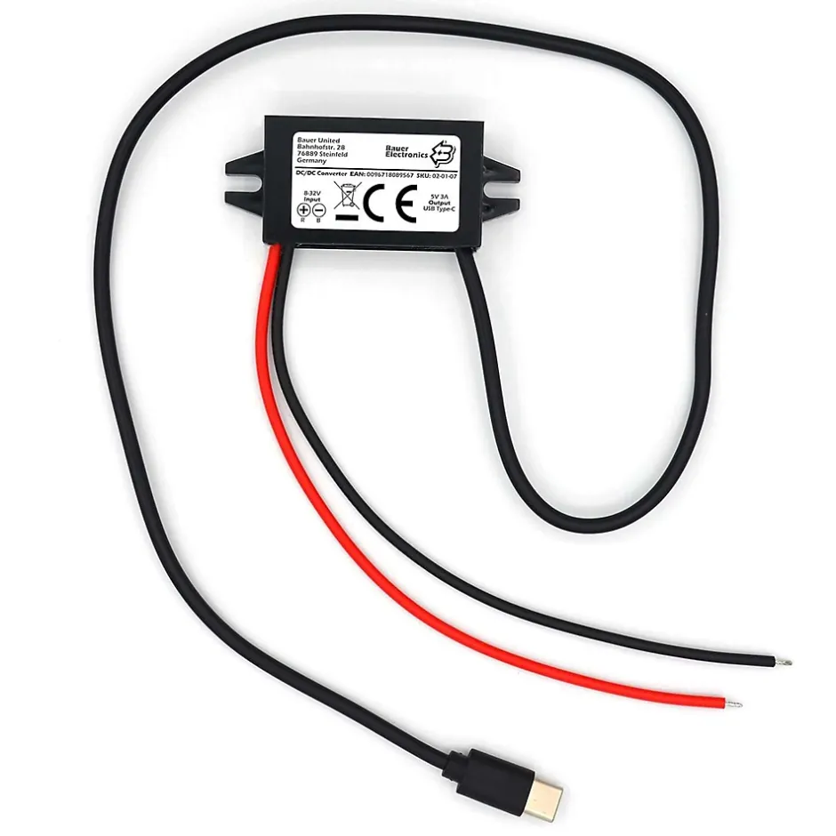 Ce convertisseur de tension dc dc 8v-32v a 5v usb type c 3a 15w BAUER ELECTRONICS promet fiabilite et efficacite pour alimenter vos appareils dans de nombreux environnements. Grace a sa tension dentree polyvalente de 8 a 32V. il sadapte parfaitement a differents types dalimentations. quil sagisse de vehicules a moteur. installations industrielles. bateaux. camions. machines agricoles. equipements de camping ou encore de loisirs et de bricolage. La sortie fixe de 5V. avec une capacite de 3 amperes et une puissance maximale de 15W via un port usb type c. assure un flux electrique stable et adapte a vos appareils electroniques compatibles. Etanche et robuste. il beneficie dun boitier encapsule de resine epoxy certifie IP68. lui permettant de resister aux conditions humides et poussiereuses. ideale pour une utilisation en exterieur ou en milieu marin. Le systeme de montage mural apporte simplicite et securite lors de linstallation. Niveau securite. ce modele inclut de multiples protections contre les surtensions. inversion de polarite. courts-circuits. surcharges et surchauffes. garantissant la fiabilite de vos equipements. Les cables dalimentation disposent dextremites ouvertes etamees pour une connexion efficace et sure. Concu pour durer et resister aux vibrations. il pese seulement 40 grammes et presente des dimensions compactes L.6.3 cm. l.2.7 cm. H.1.4 cm. facilitant son integration. meme dans les espaces restreints. Conforme aux normes CE et fabrique selon un processus certifie ISO 9001. ce convertisseur assure un controle qualite rigoureux. Il fonctionne silencieusement. sans besoin de refroidissement actif. tout en delivrant la puissance nominale de facon continue selon la charge demandee. Securisez votre installation electrique et beneficiez dune alimentation fiable et stable pour tous vos besoins grace a ce convertisseur BAUER ELECTRONICS.