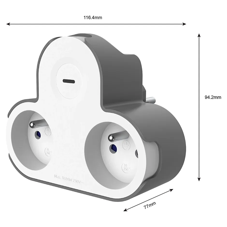 - Notre multiprise deux prises, équipée d’une protection enfant pour plus de sécurité, permet de brancher des appareils en toute simplicité.