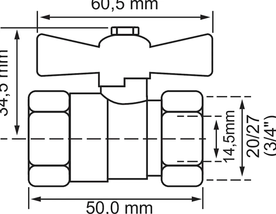 Vanne à sphère double femelle/femelle 20/27 manette papillon Somatherm for you