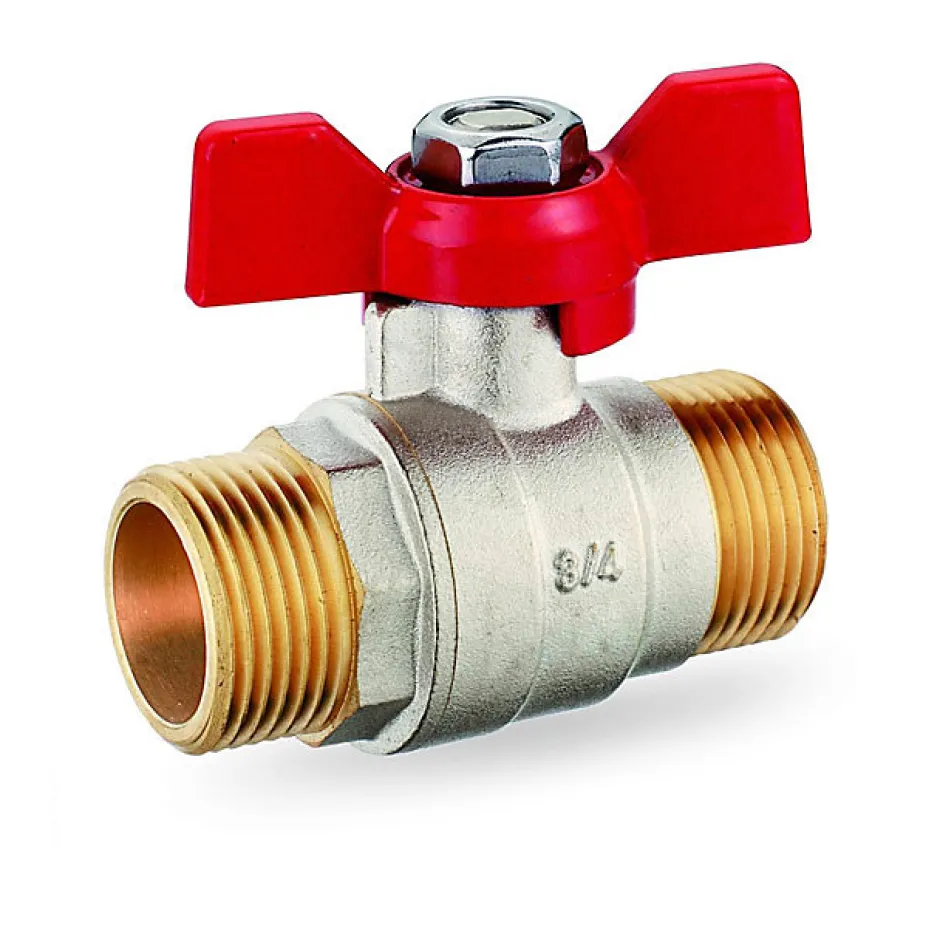 Vanne 1/4 de tour à bille pleine en laiton chromé dur.Siège PTFE.Qualité eau potable.Température d’utilisation: 150 °C.Pression maxi: 20 bars.Raccords mâle/mâle 20/27.Sans purge.Manette papillon.
