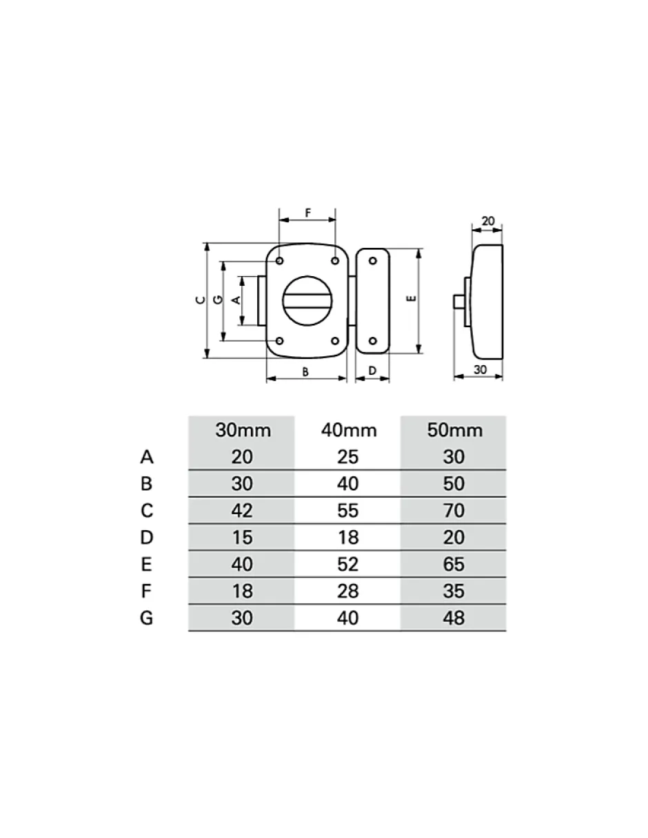 Coffre alliage moulé. Gâche alliage moulé. Bouton ABS chromé. Pêne alliage moulé (50 mm). Pêne acier nickelé (30 – 40 mm).
