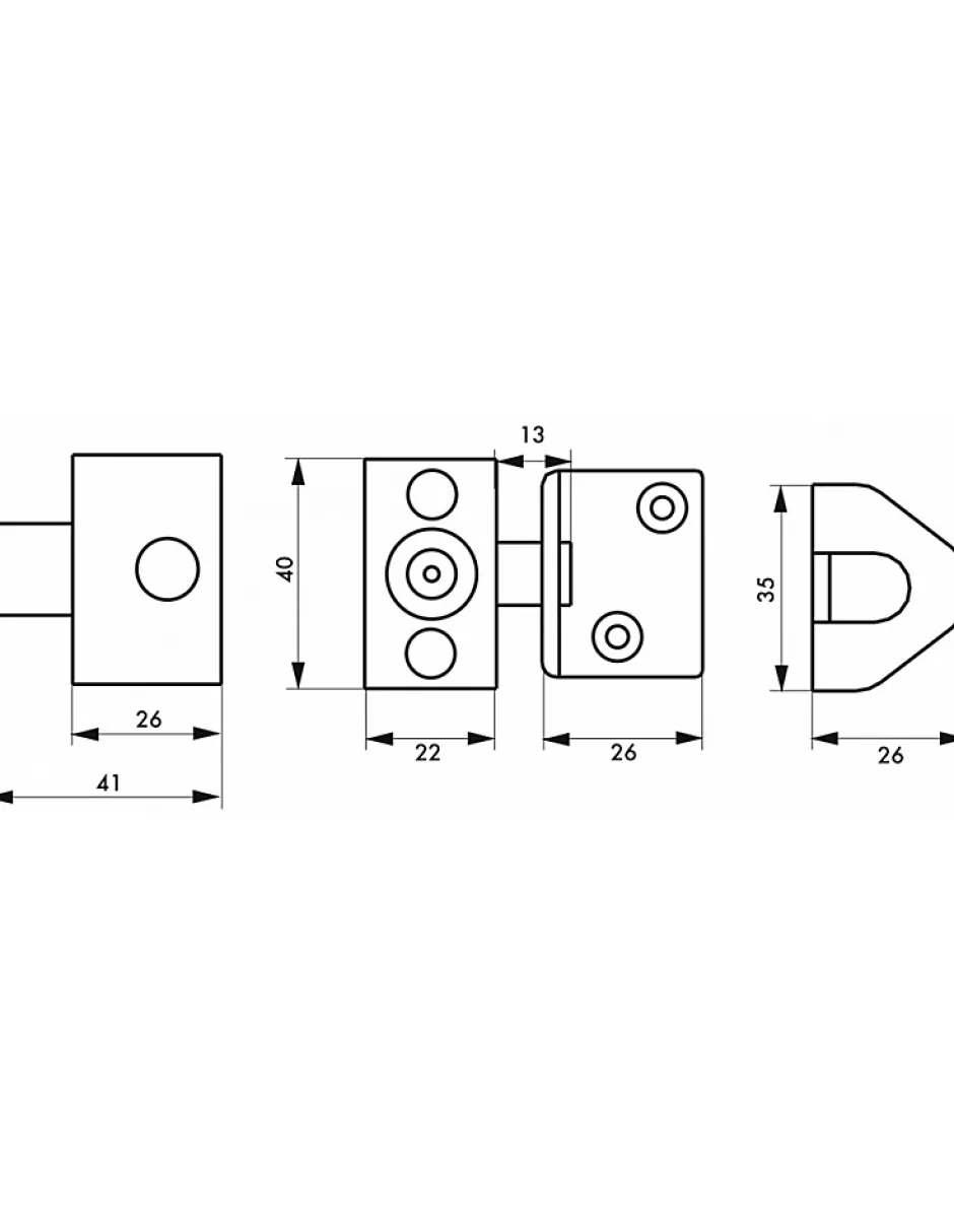 Corps alliage moulé. Gâche équerre. Gâche plate. 1 clé.