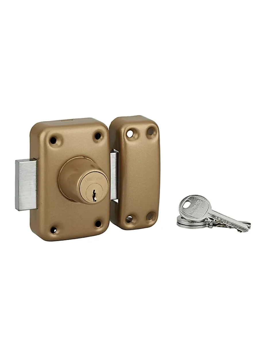 Les points Clés :Verrou cylindre double entréeVerrou Apache Epoxy OrVerrou pour porte d’entrée vitréeHauteur du coffre 90 mmLargeur du coffre 60 mmCylindre Diamètre 23 mmCylindre Longueur 50 mmCylindre Laiton à 5 goupilles3 Clés Plates crantéesNiveau de Sécurité :