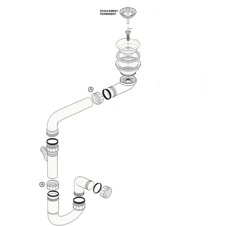 - Vidage évier 1 bac écoulement permanent