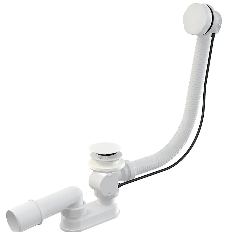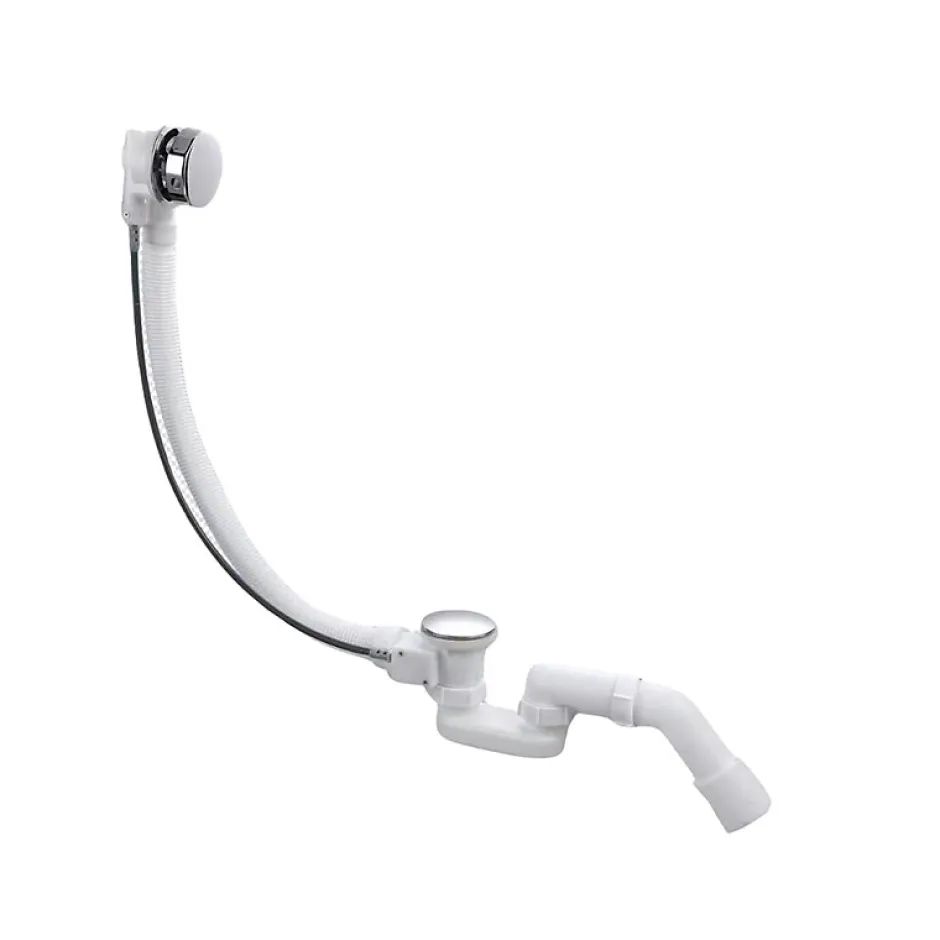 Vidage baignoire avec trop-plein – Bonde blanche – FlexibleCe vidage de baignoire avec trop-plein est conçu pour assurer une évacuation fiable et une installation simple sur la majorité des baignoires standards. Son mécanisme à câble permet l’ouverture et la fermeture de la bonde directement depuis la commande du trop-plein, offrant un usage pratique et confortable au quotidien.La bonde en finition chrome apporte une touche discrète et élégante qui s’intègre facilement dans différents styles de salle de bain. Le flexible de liaison assure une installation adaptable et facilite le raccordement entre la bonde et le trop-plein.Grâce à sa sortie d’évacuation standard, ce vidage est compatible avec la plupart des installations domestiques. Il constitue une solution complète pour équiper une baignoire lors d’une installation neuve ou d’un remplacement.Dimensions et caractéristiques du produitType : Vidage de baignoire avec trop-pleinFinition bonde : ChromeLongueur du flexible : 65 cmDiamètre de bonde : Ø 72 mmHauteur minimale sous baignoire : 10,6 cmSortie d’évacuation : Ø 40 / 50 mmCommande : Mécanisme à câbleCompatibilité : Baignoires standards