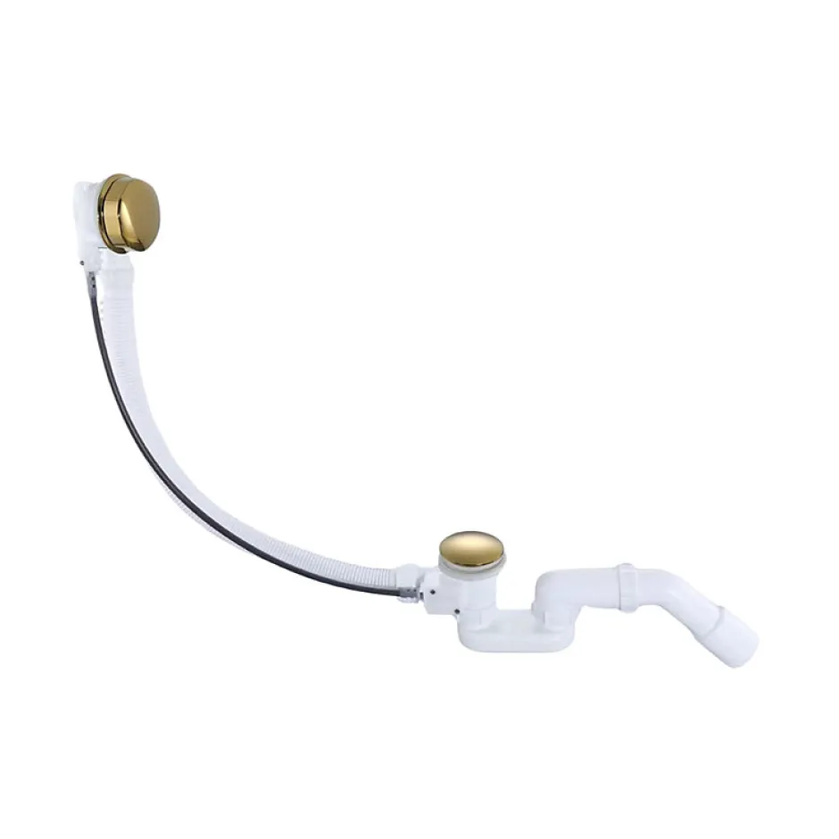Vidage baignoire avec trop-plein – Bonde dorée brossée – FlexibleCe vidage de baignoire avec trop-plein est conçu pour assurer une évacuation efficace de l’eau tout en garantissant une installation simple et fiable. Son mécanisme à câble permet d’ouvrir et de fermer la bonde facilement depuis la commande située au niveau du trop-plein, offrant un confort d’utilisation au quotidien.La bonde en finition dorée brossée apporte une touche élégante et raffinée qui s’intègre parfaitement dans les salles de bain modernes. Le flexible de liaison facilite l’installation et permet un raccordement adaptable entre la bonde et le trop-plein.Grâce à sa sortie d’évacuation standard, ce vidage est compatible avec la majorité des installations domestiques. Il constitue une solution pratique pour équiper une baignoire lors d’une installation neuve ou remplacer un système de vidage existant.Dimensions et caractéristiques du produitType : Vidage de baignoire avec trop-pleinFinition bonde : Doré brosséLongueur du flexible : 65 cmDiamètre de bonde : Ø 72 mmHauteur minimale sous baignoire : 10,6 cmSortie d’évacuation : Ø 40 / 50 mmCommande : Mécanisme à câbleCompatibilité : Baignoires standards