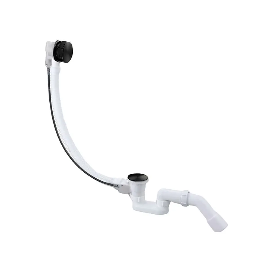 Vidage baignoire avec trop-plein – Bonde noire – FlexibleCe vidage de baignoire avec trop-plein permet une évacuation efficace de l’eau tout en offrant une installation simple et fiable. Grâce à son mécanisme à câble, l’ouverture et la fermeture de la bonde s’effectuent facilement depuis la commande située au niveau du trop-plein.La bonde en finition noire apporte une touche moderne et discrète qui s’intègre parfaitement dans les salles de bain contemporaines. Le flexible de liaison facilite l’installation et permet un raccordement adaptable entre la bonde et le trop-plein.Doté d’une sortie d’évacuation standard, ce vidage est compatible avec la majorité des installations domestiques. Il constitue une solution pratique pour équiper une baignoire lors d’une nouvelle installation ou pour remplacer un système existant.Dimensions et caractéristiques du produitType : Vidage de baignoire avec trop-pleinFinition bonde : NoirLongueur du flexible : 65 cmDiamètre de bonde : Ø 72 mmHauteur minimale sous baignoire : 10,6 cmSortie d’évacuation : Ø 40 / 50 mmCommande : Mécanisme à câbleCompatibilité : Baignoires standards