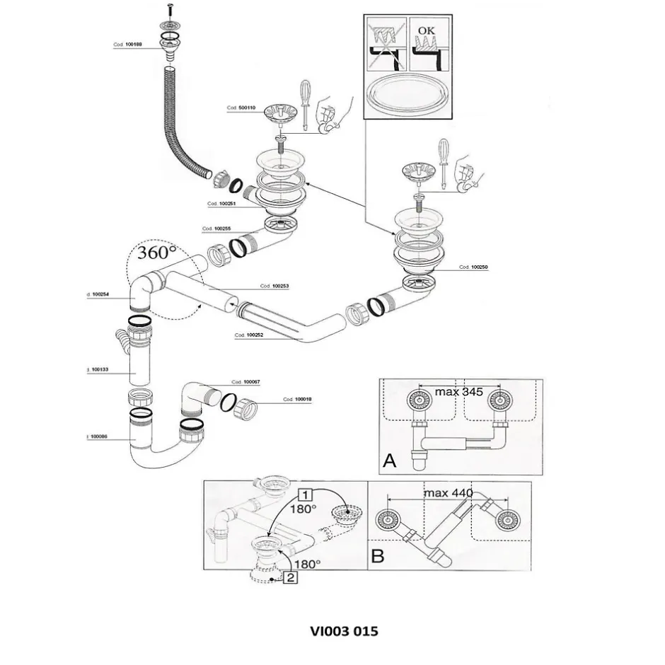 Vidage automatique gain de place CUIPD316 pour évier 2 bacs – Siphon gain de place-Cuisissimo Outlet