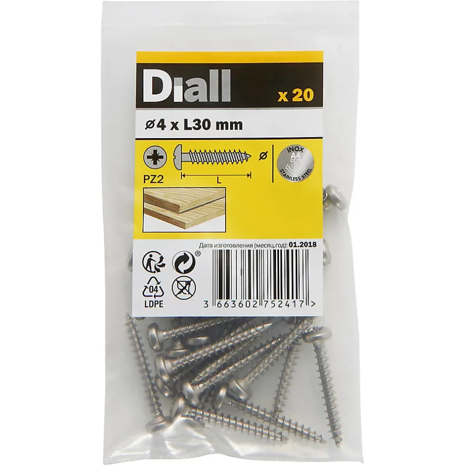 Les 20 vis à bois à tête cylindrique de ce pack sont fabriquées à partir d’acier inoxydable. Elles mesurent 30 mm de long et ont un diamètre de 4 mm. Elles sont idéales pour tout un éventail de projets de bricolage.