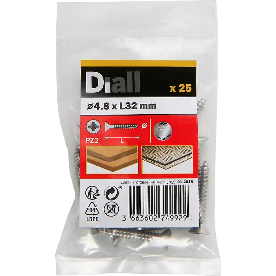 Les 25 vis auto-taraudeuses fraisées de ce pack sont fabriquées à partir d’acier inoxydable. Elles mesurent 25 mm de long, ont un diamètre de 4,8 mm et sont entièrement filetées. Elles sont idéales pour tout un éventail de projets de bricolage.