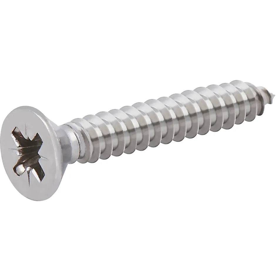 Vis autoperceuses Pozidriv PZ2. Fraisage en acier inoxydable (A2). Longueur du produit : 32 mm. Diamètre du produit : 4,8 mm.
