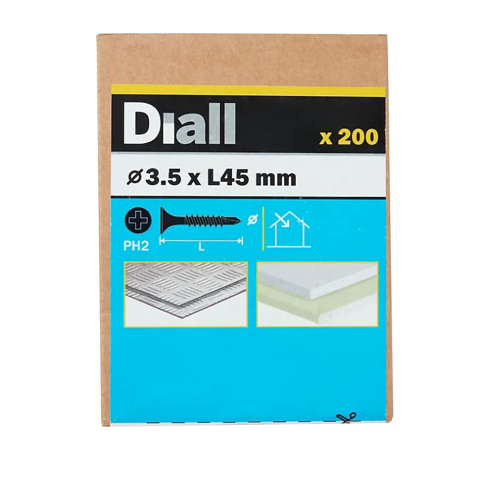 Les 200 vis fraisées pour plaque de plâtre phosphatées noires de ce pack sont fabriquées à partir d’acier au carbone. Elles mesurent 45 mm de long, ont un diamètre de 3,5 mm et sont entièrement filetées. Ce pack est idéal pour tout un éventail de projets de bricolage.
