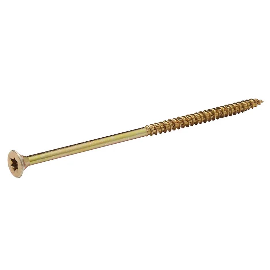 Les 100 vis à bois premium zinguées jaunes à double tête fraisée de ce pack sont fabriquées à partir d’acier. Elles mesurent 140 mm de long et ont un diamètre de 6 mm. Elles sont idéales pour tout un éventail de projets de bricolage.