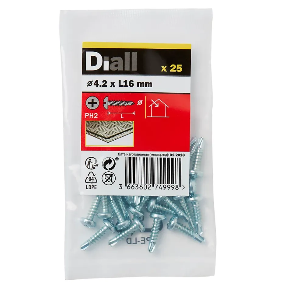 Vis métal auto-perceuses. Longueur du produit : 16 mm. Diamètre du produit : 4,2 mm. Type de filetage : Auto-perçant. Type embout : Pointe trempée.