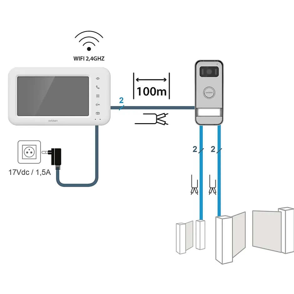 - Le visiophone est compatible avec la majorité des moteurs de portail présents sur le marché