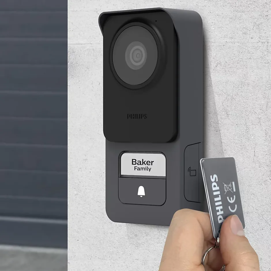 Contrôlez l’accès à votre domicileVous disposez de deux badges RFID qui vous permettent d’ouvrir la gâche du portillon ou le portail en totalité.Depuis votre moniteur vous avez la possibilité de choisir le mode d’ouverture parmis les deux alternatives citées au dessus. Des fonctionnalités primordialesLa fonction Door Check vous permet à tout moment de visualiser les abords de votre domicile même lorsque personne ne sonne.De nuit, profitez des LEDs infrarouges intégrées et simplifiez la visite de vos visiteurs avec le rétroéclairage de porte-nom et du bouton d’appel sur la platine de rue. Profitez d’une installation simple et intuitiveLe WelcomeEye Lite 2 s’installe sur deux fils : la platine de rue et le moniteur ont une partie à fixer au mur qui permet ensuite d’effectuer le câblage facilement tout en ayant les mains libres.Enfin, la fonction Polarity Protect protège votre installation contre les erreurs de câblage.Un visiophone robuste et éco-conçuRecyclé à 100%, l’aluminium associé aux certifications IP55 et IK08 rend la platine de rue résistante à l’eau, la poussière et la corrosion.Le plastique utilisé pour la platine et le moniteur est quant à lui recyclé à 70%. Le contenu du kitCe kit comprend : 1 moniteur couleur 7″ tactile1 platine de rue avec option RFID intégrée1 support mural pour moniteur1 alimentation enfichable2 badges RFIDGérez facilement l’accès à votre domicile grâce au visiophone éco-conçu Philips WelcomeEye Lite 2 et son écran ultra plat de 7″. Son image de haute qualité et ses fonctionnaliés intelligentes vous permettent une ut