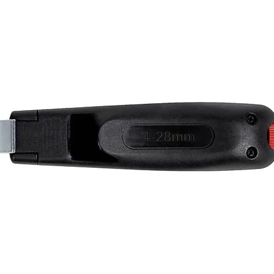 Outil de de9nudage Wiha 44240 pour ce2bles ronds, compatibilite9 4a0mm e0 28a0mm, longueur 130a0mm, poids 73a0g. Equipe9 de2b4une lame inte9rieure autorotative permettant de passer automatiquement de la coupe circulaire e0 la coupe longitudinale, cet outil assure des de9nudages propres et rapides. La profondeur de coupe se re9gle en continu via une vis de re9glage pour se9lectionner facilement la coupe adapte9e e0 la section du ce2ble. Poigne9e e0 grand diame8tre pour une prise en main confortable, e9trier de protection couvrant la lame pour la se9curite9 et lame de rechange stocke9e dans la poigne9e pour un remplacement rapide. Ide9al pour installation e9lectrique et travaux de pose, usage professionnel pour de9nuder toutes les coupes transversales habituelles.