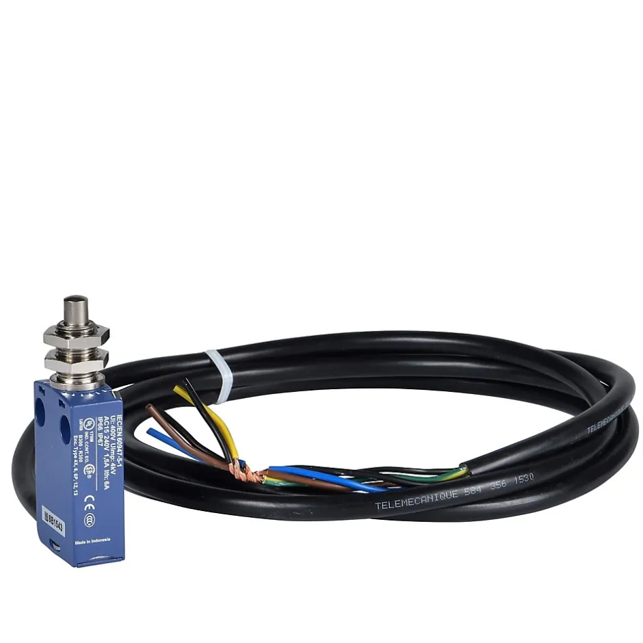 Interrupteur fin de course complet avec corps en métalCe capteur de fin de course de la gamme OsiSense XCMD fabriqué par Schneider Electric sous la marque Télémécanique Sensors est destiné à un usage industriel.L’interrupteur de position est livré pré-câblé avec un cable 5×0,75mm² de 1m assurant une connexion étanche IP68Livré complet, avec un corps en métal et un actionneur de type poussoir piston en métal. Les spécificités de l’interrupteur Schneider XCMD21F0L1Dimensions HxLxP: 50x30x16mmContacts à action brusqueContacts 1NO+1NFCorps en métal certifié IK06Étanche IP68cable 5×0,75mm² de longueur 1m